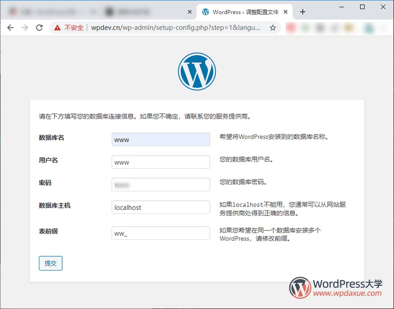 在瀏覽器中訪問 http://www.wpdev.cn 就可以進(jìn)行WordPress安裝了!
