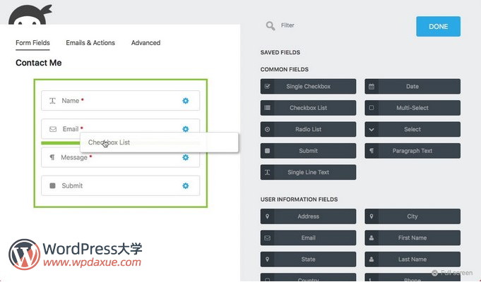 顧名思義,表單生成器插件是一個允許您創(chuàng)建自己的表單的工具。表單生成器插件附帶了對初學(xué)者友好的編輯器。安裝后,您可以直接從WordPress儀表板內(nèi)部使用它來設(shè)計用于各種目的的自定義表單。