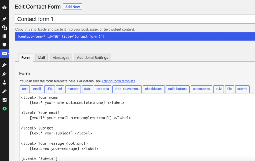 新的 CF7 Blocks 插件可以使用 WordPress 的默認(rèn)編輯器編輯 CF7 表單,而不必弄亂短代碼和 HTML。它仍然有自己專用的聯(lián)系人表單編輯頁面,除了能夠?qū)⒆侄巫远x為塊。新表單將使用塊界面,而舊表單仍然可以使用 CF7 的默認(rèn) HTML 編輯器進(jìn)行編輯。