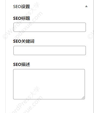 B2主題自帶了一個(gè)簡(jiǎn)單文章SEO功能,允許設(shè)置文章的SEO標(biāo)題、關(guān)鍵詞和描述,如下圖所示: