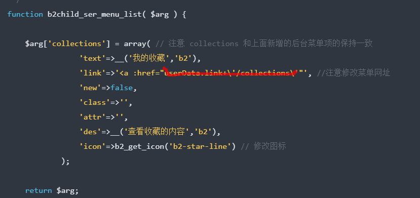 'link'=>'<a :href="userData.link+\'/collections\'"', //注意修改菜單網(wǎng)址