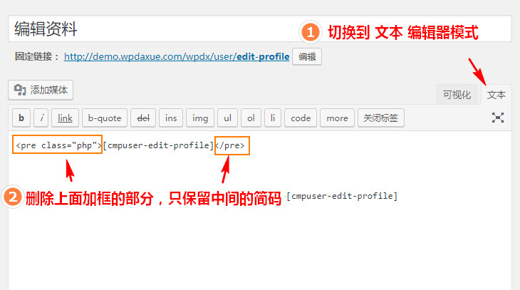解決的辦法:添加簡(jiǎn)碼的時(shí)候,建議切換到 文本 編輯器模式,如果發(fā)現(xiàn)有 pre 標(biāo)志,就刪除,僅保留簡(jiǎn)碼部分,保存即可: