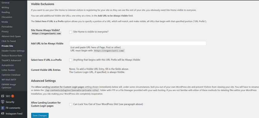 選擇您的首選項,單擊保存更改,您的站點(或其中的一部分)現(xiàn)在設置為私有!