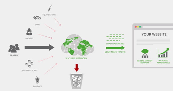 如果是外貿(mào)網(wǎng)站,我們建議使用Sucuri,因為它是最好的WordPress安全插件和網(wǎng)站防火墻之一。它在DNS級別上運行,這意味著他們可以在向您的網(wǎng)站發(fā)出請求之前捕獲DDoS攻擊。 Sucuri的價格從每月20美元起(每年支付)。