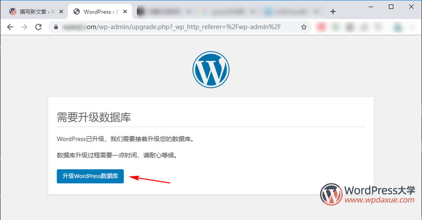 大版本更新一般都是需要升級下數(shù)據(jù)庫的,訪問網(wǎng)站域名+/wp-admin/目錄,比如 http://www.baidu.com/wp-admin/ ,就會提示你升級數(shù)據(jù)庫,按照下圖點擊升級即可:
