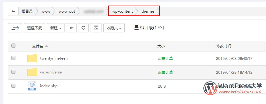 ①.解壓下載的安裝包,刪除里面的wp-content文件夾;