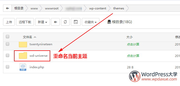2.進(jìn)入到 themes 目錄下,重命名當(dāng)前使用的主題。
