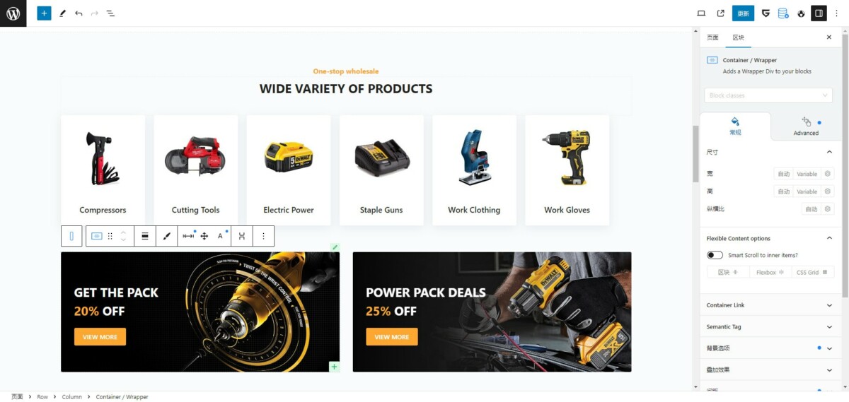 增強(qiáng)版的可視化區(qū)塊編輯器,數(shù)十個內(nèi)容區(qū)塊,輕松制作各種復(fù)雜頁面布局。