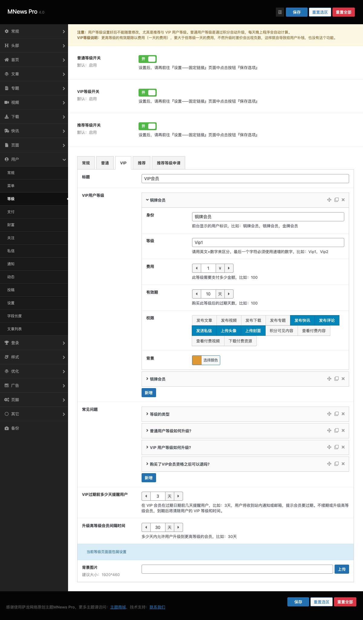 | 允許上傳的文件類型 | 自動更新普通等級 | VIP 到期提醒 | 字符長度限制 |