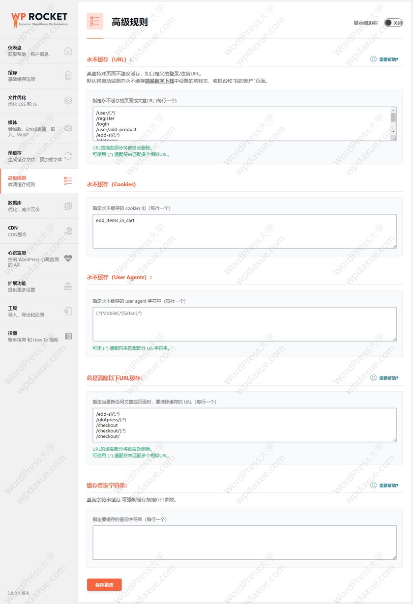 WP Rocket 功能預(yù)覽