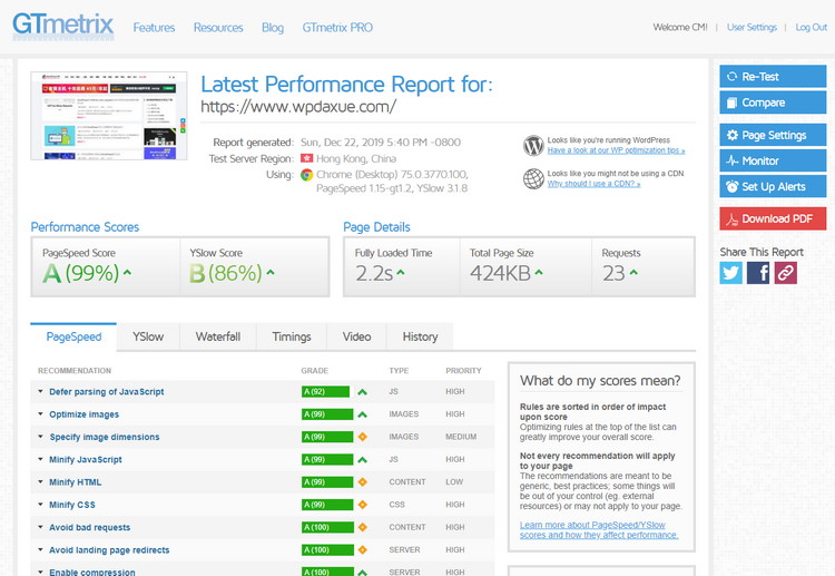 - 如果您需要詳細(xì)的測(cè)試結(jié)果并隨時(shí)間推移進(jìn)行跟蹤,則應(yīng)繼續(xù)使用GTmetrix。 ? 建議
