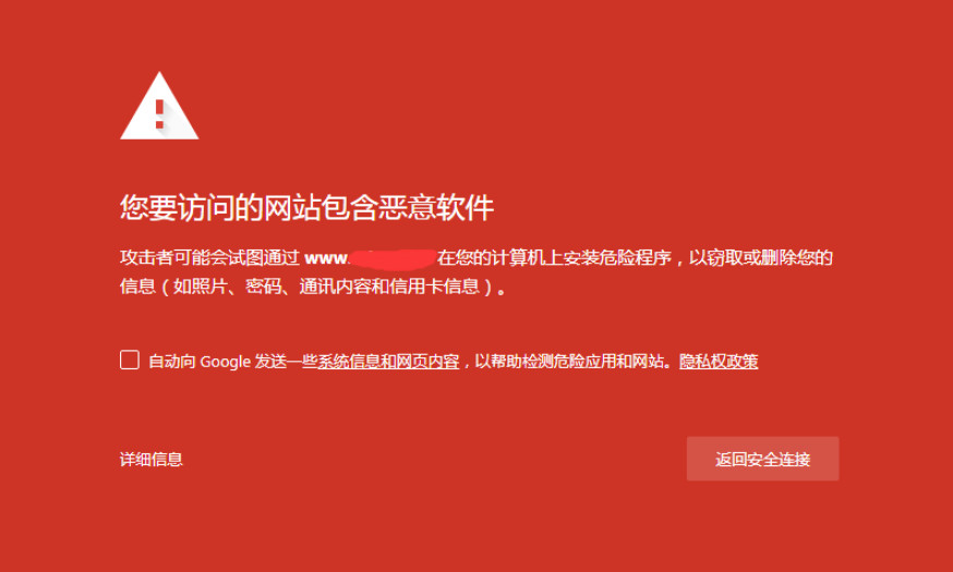 比如在網(wǎng)站被黑客攻擊時(shí)發(fā)生。如果攻擊者在沒(méi)有網(wǎng)站所有者知情的情況下將惡意軟件置于網(wǎng)站上,所有者在技術(shù)層面上沒(méi)有做錯(cuò)任何事情,該網(wǎng)站也可能會(huì)被列入黑名單。 訪問(wèn)者在訪問(wèn)您的網(wǎng)站時(shí)會(huì)看到建議他們離開(kāi)的警告。這會(huì)增加您的跳出率并損害您網(wǎng)站的聲譽(yù)。