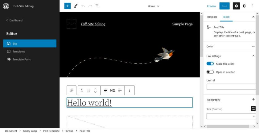 簡而言之,全站編輯意味著 WordPress 現(xiàn)在可以在基于塊的圖形用戶界面中創(chuàng)建和編輯頁面模板和元素,如頁眉和頁腳。