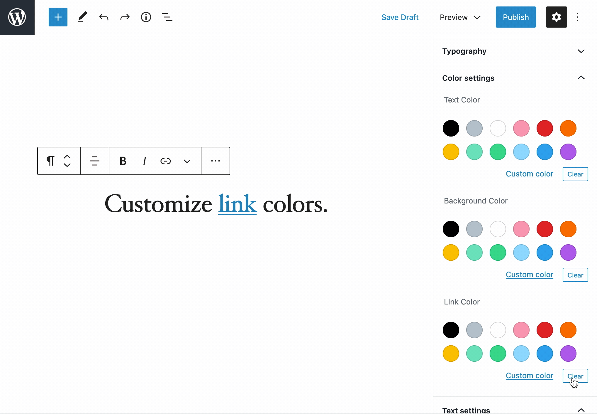 - 新的鏈接顏色控件已添加到段落、標(biāo)題、分組、列以及媒體和文本塊