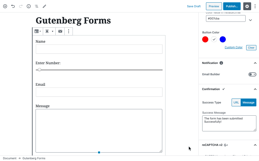 Gutenberg Forms 還支持設(shè)置郵件發(fā)送,并且定制郵件內(nèi)容。此外,你也可以使用古騰堡編輯器創(chuàng)建單獨的聯(lián)系表單,然后通過簡碼在任何頁面上進(jìn)行調(diào)用。