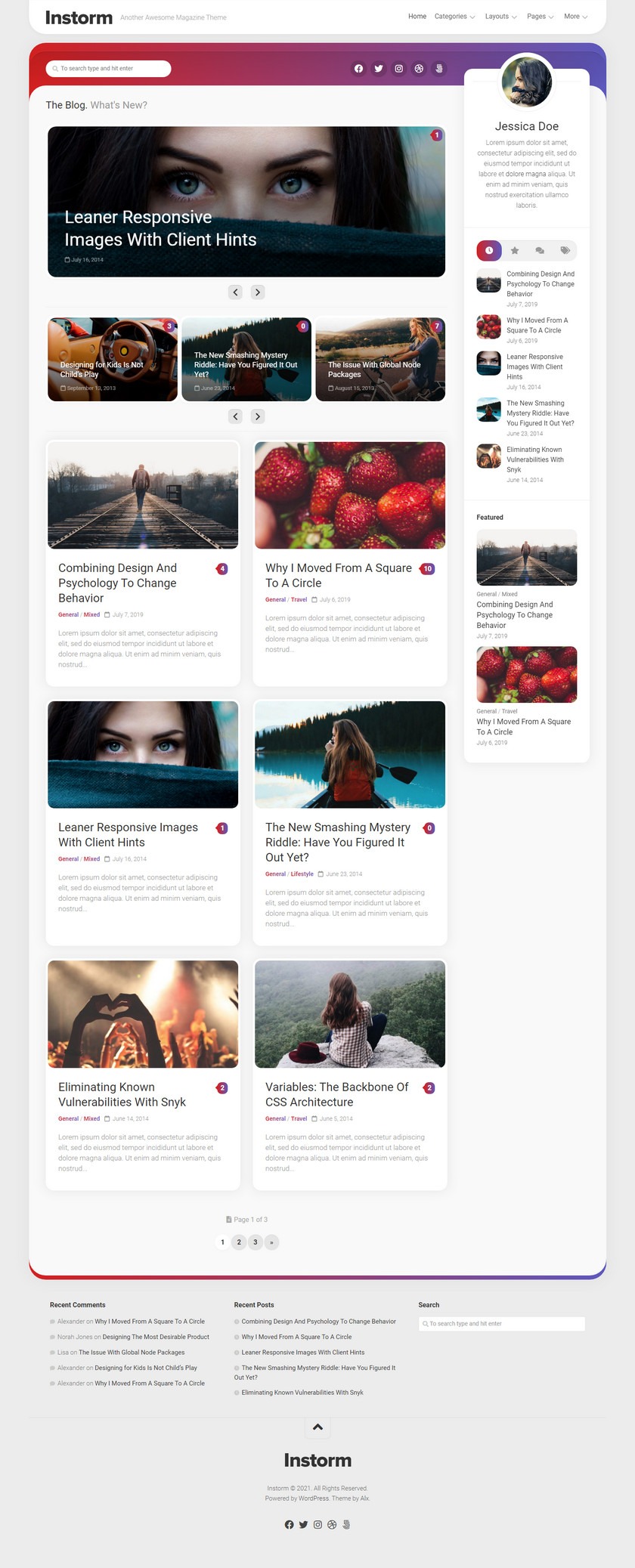 Instorm 是一個完美的雜志和博客主題,具有豐富多彩的漸變風格。通過將其設(shè)置為您想要的任何顏色來賦予它您自己的風格。