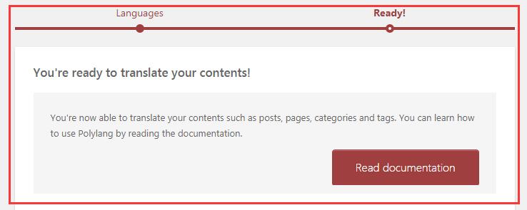 到這一步的時(shí)候,基本的polylang翻譯插件設(shè)置就完成了。完成之后頁(yè)面上還有很多的相關(guān)注意事項(xiàng)和文檔需要我們?nèi)ミM(jìn)一步的了解和掌握。(這部分內(nèi)容因?yàn)槠P(guān)系,同學(xué)們自己去實(shí)操掌握吧)。
