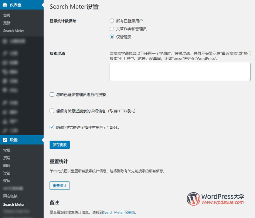 Search Meter 的設(shè)置界面,在 設(shè)置 – Search Meter 鏈接進入: