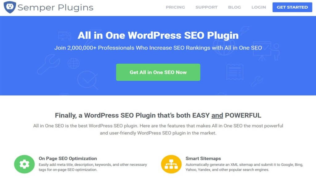 All in One SEO Pack 是一個多功能的SEO插件。它擁有超過200萬活躍安裝和1,055個五星級評論。