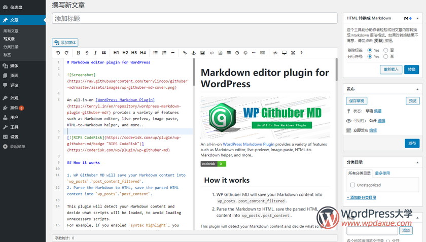 - WP Githuber MD會(huì)將您的Markdown內(nèi)容保存到