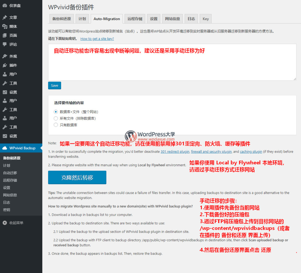 網(wǎng)站的備份和還原,是所有網(wǎng)站維護(hù)人員不可避免的工作,但是對(duì)于一般WordPress用戶(hù)來(lái)說(shuō),這個(gè)工作并不是太容易。 倡萌今天推薦的 WPvivid Backup 插件,可以自動(dòng)或手動(dòng)備份網(wǎng)站文件和數(shù)據(jù)庫(kù),然后可以在新的wordpress網(wǎng)站也安裝這個(gè)插件,就可以將已備份的文件和數(shù)據(jù)庫(kù)恢復(fù)到新網(wǎng)站。