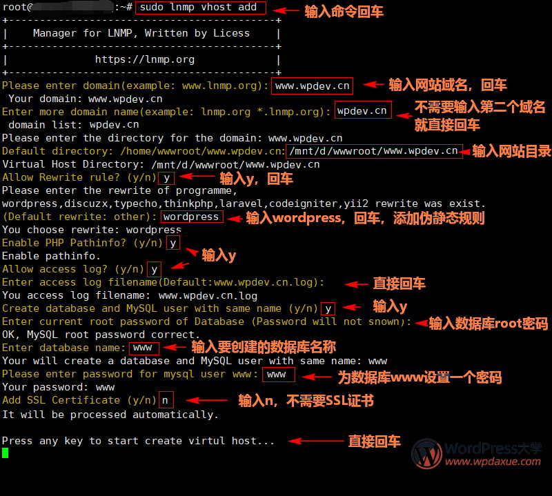 LNMP環(huán)境啟動后,我們使用下面的命令添加網(wǎng)站: